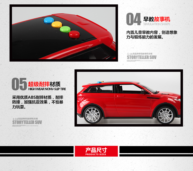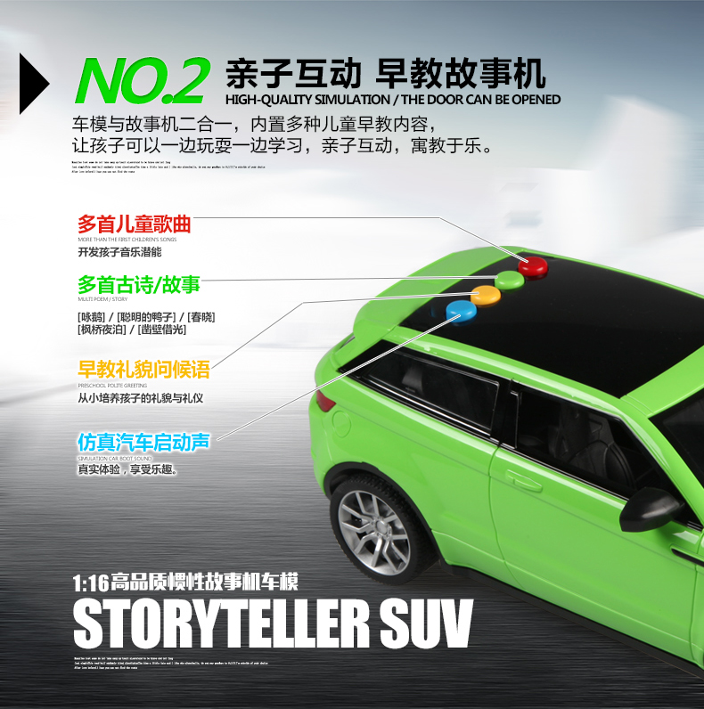 - 产品名称:1:16惯性路虎车会讲故事的早教益智模型
