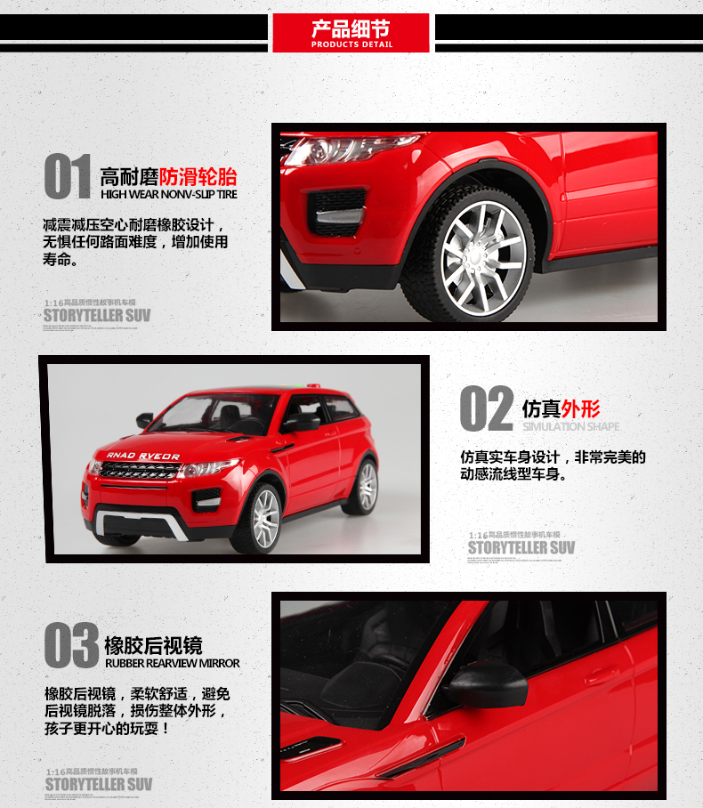 产品名称:1:16惯性路虎车会讲故事的早教益智模型